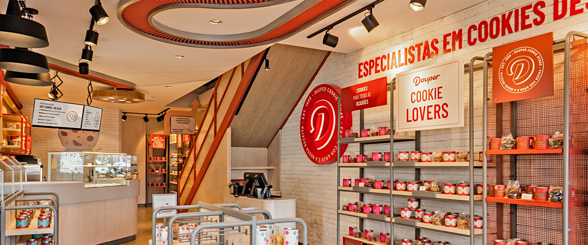 A Dauper é uma conceituada fábrica de cookies situada em Canela (RS), que atende a diversas marcas do varejo em todo o Brasil. Ela sentiu a necessidade de ter um conceito de loja que impactasse o público com uma experiência gastronômica dentro do universo dos cookies.
